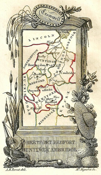It would not be surprising if this family still has descendants in the region. However few records have been researched, and the family after 1700 still needs to be reconstructed. The information, which still needs to be verified, is presented in an effort to get the process started. The map at left, drawn by Aristide Perrot in 1823, shows Bedfordshire, Hertsford and Huntingdonshire, where this family lived.Based primarily on: