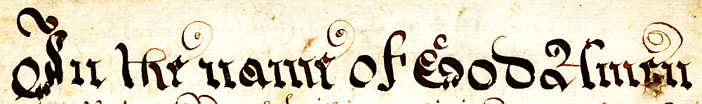 First I bequeath my Soul & Spiritt into ye handes of Allmighty God by whom I trust to bee saved through ye death of my Saviour & Redeemer Jesus Christ my body in hope of a joyfull Resurrection I commit to decent and Christian buriall and touching the distribution of my worldly goods I dispose of ye same as followeth
