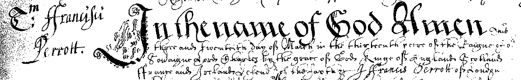 Will of Francis Perrott, merchant of London, dated 20 March 1636/7. Many relatives and cousins are mentioned.