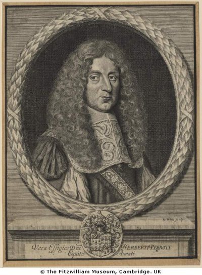 Eighth Generation (5th Great-Grandchildren)74. Herbert Perrot (Herbert (Sir)7, Robert6, Richard5, Thomas4, John3, William2, John1) was born in 1643 in Morton on Lugg, Herefordshire and died in 1677 in London, at age 34.