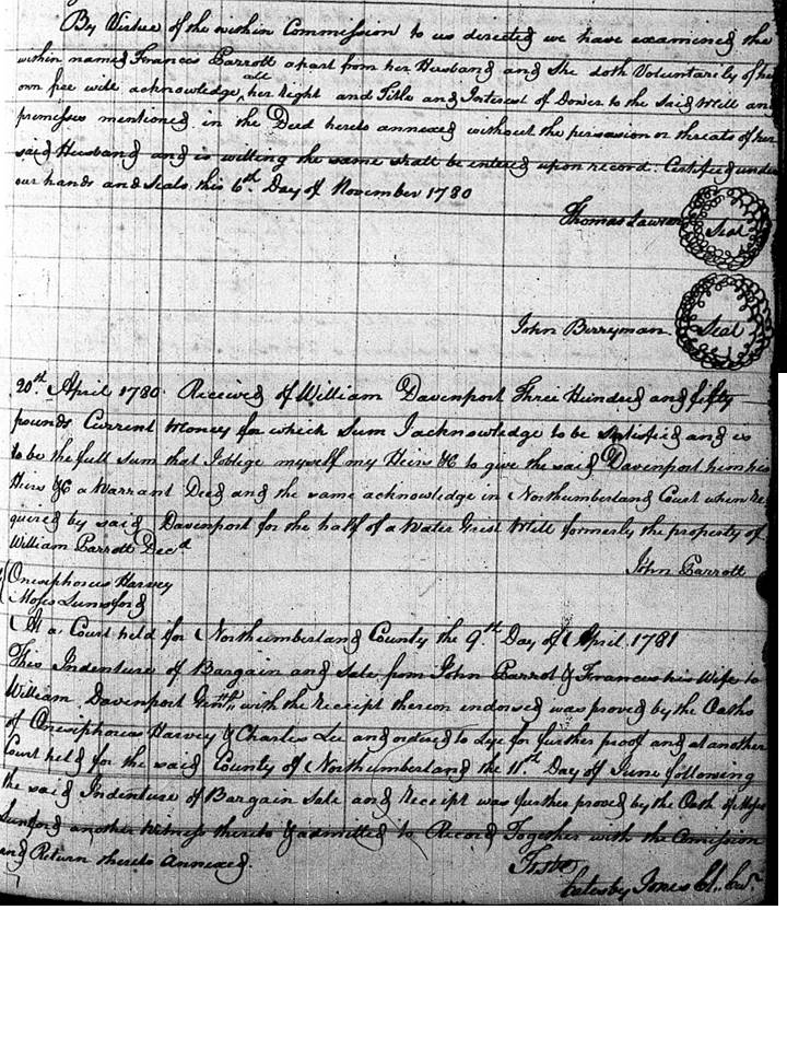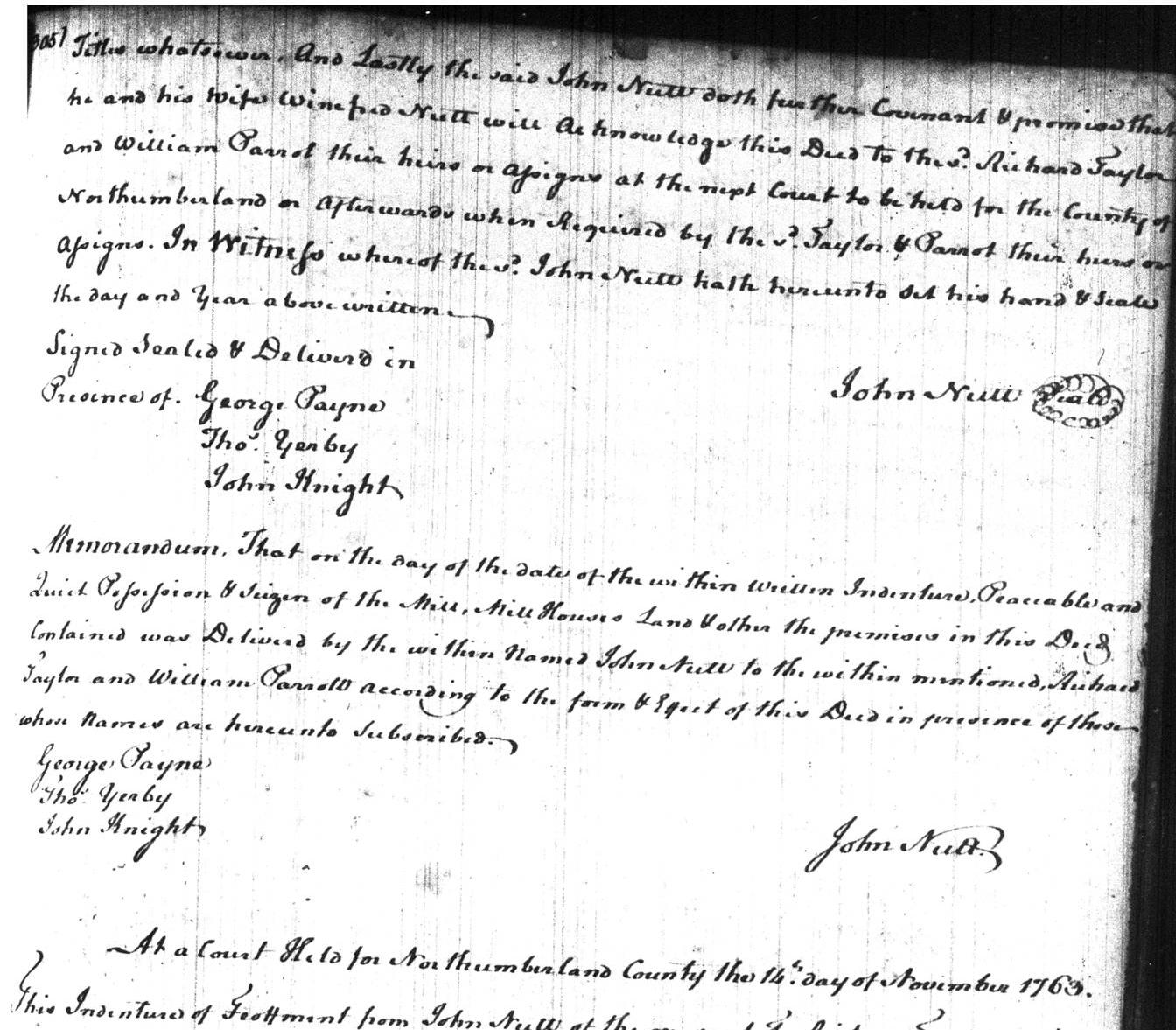 Lawrence Parrott, oldest known ancestor: The Lawrence who settled in Gloucester cannot be same Lawrence who settled in Northumberland and had a son, William in 1731. The reason is that, if one assumes the Lawrence from Gloucester was as young as 18 when transported to the Colonies, he would have been 87 years old in 1731 when William was born, and thus too old to be starting a family. Even another son of Lawrence from Gloucester county would have been too old to father a child in 1731. Thus the Northumberland Lawrence must have been a grandson of Lawrence the immigrant. |
