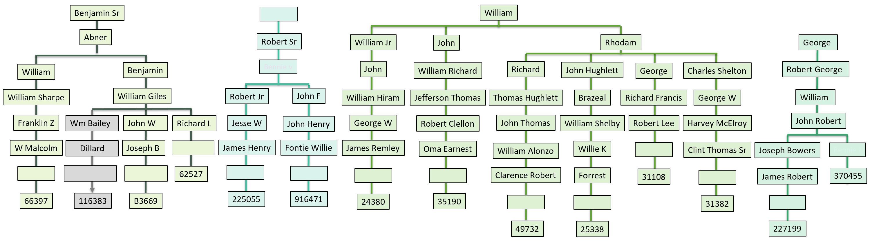 | Descended from Robert Parrott, Mathews Parish, Gloucester Co., Virginia, ca 1773. | |||||||||||||||||||||||||||||||||||||