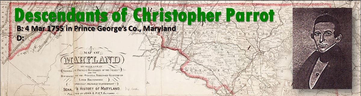 | Descended from: Christopher Parrott, born in 1755, Prince Georges Co., MD | |||||||||||||||||||||||||||||||||||||